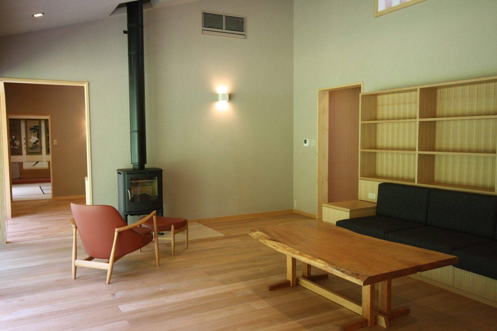冬には薪ストーブの炎が、家族の中心にあたたかな灯りをともす。